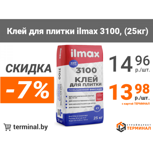 Клей для плитки ilmax 3100 со скидкой